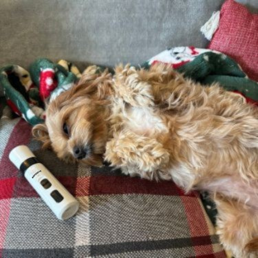 "I was always nervous about trimming our Labrador's nails, especially since he has black paws, making it hard to see where to cut. And he was always terrified when he even saw nail clippers. But ever since we started using the Silent Groom Pro, it’s been such a peaceful experience. It's very quiet, and my dog actually relaxes, sometimes he even dozes off! It's turned our stressful sessions into quick, quiet grooming times."