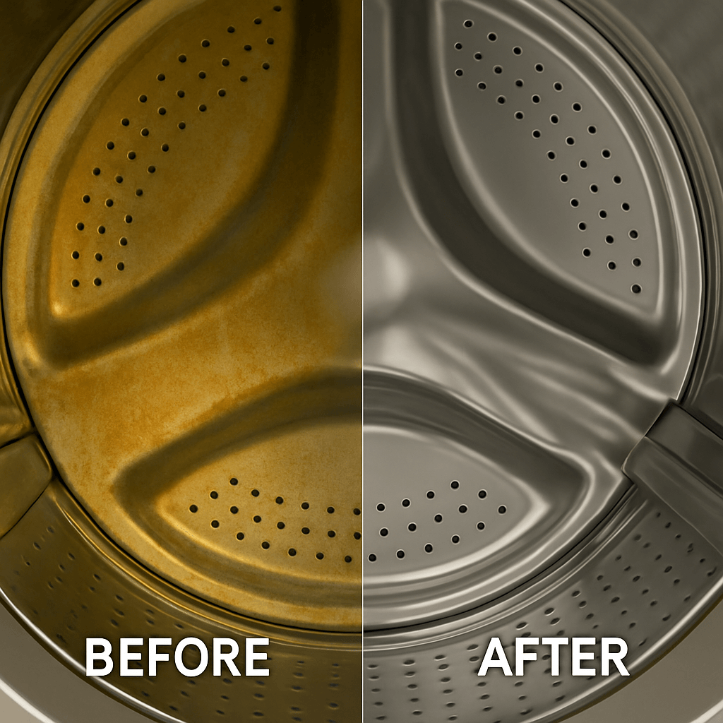 On the outside, your washer might seem spotless—but inside, it’s a whole different story. Layers of grime, soap scum, and dirt build up over time, trapping foul odors and weakening your washer’s performance. Left unchecked, this mess can even cause costly breakdowns.